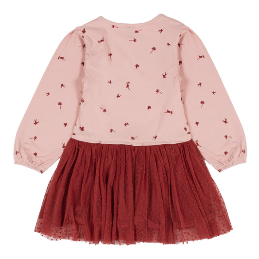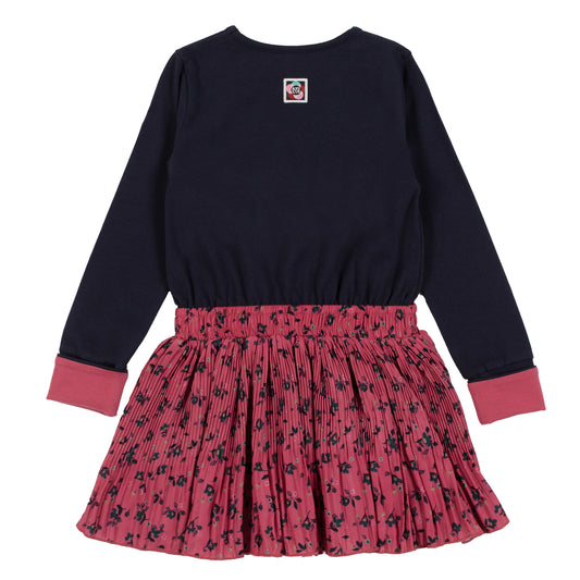 Robe bi-matières à manches longues - Bouquet de douceur - F2406-06 - 2 à 12 ans