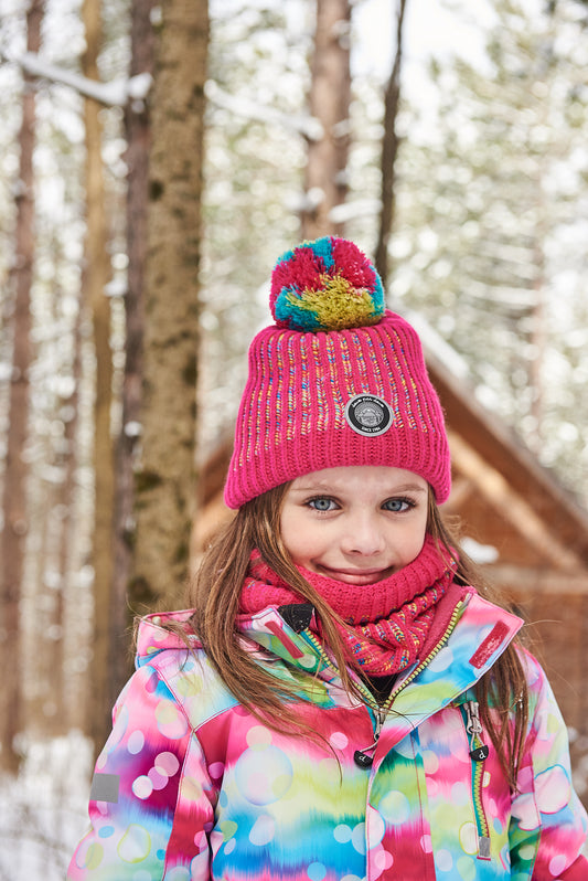 Tuque d’hiver en tricot - Rose & Arc-en-ciel - G10ZE01-000 - 2/4 à 5/8 ans