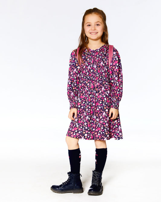 Robe à manches longues bouffante imprimé fleur F20I91-054 2 à 10 ans