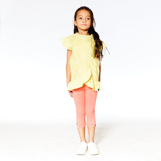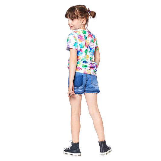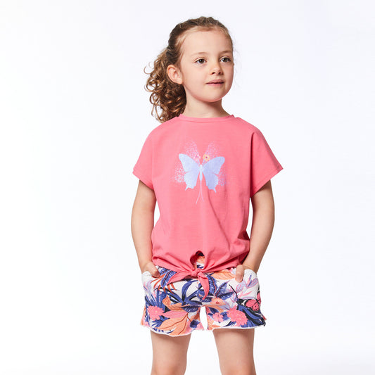 Culotte courte avec poche et détail au crochet E30K25-054 - Fleurs papillons - 2 à 14 ans