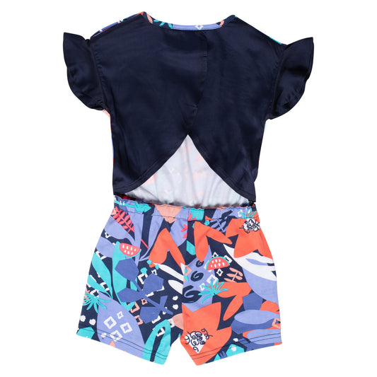 Combishort à manches courtes imprimée en coton biologique C30F41-025 - 3 à 12 ans