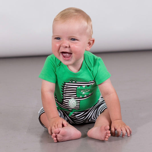 Ensemble cache-couche imprimé gentil croco et short évolutif rayé en coton organique - 3 à 24 mois
