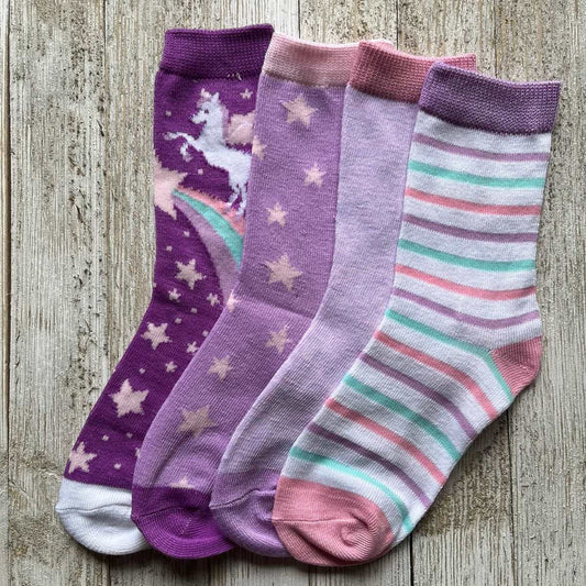 Bas - Ensemble de 4 paires - Licornes - Taille 5 à 9