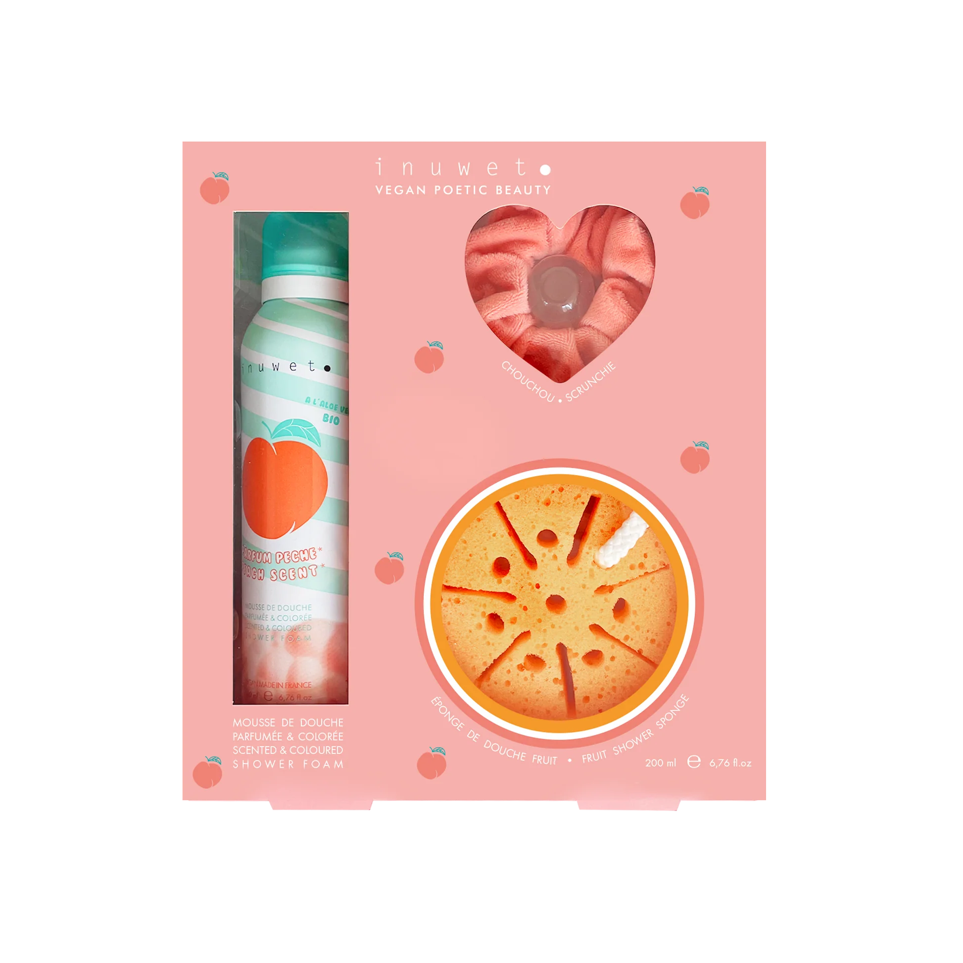 Coffret mousse de douche et accessoires - Pêche