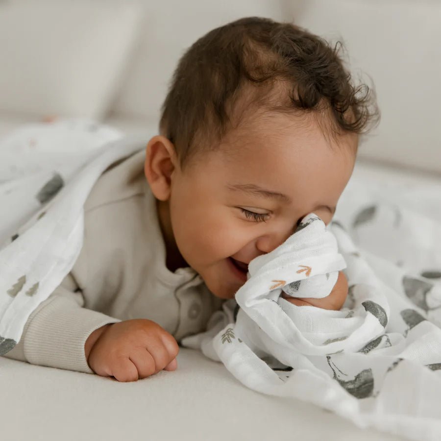 Couverture d'emmaillotage de mousseline 100% coton. Pré-lavée et ultra légère, cette couverture multi-usages en mousseline est de manière à permettre à l’air de circuler de façon optimale.
