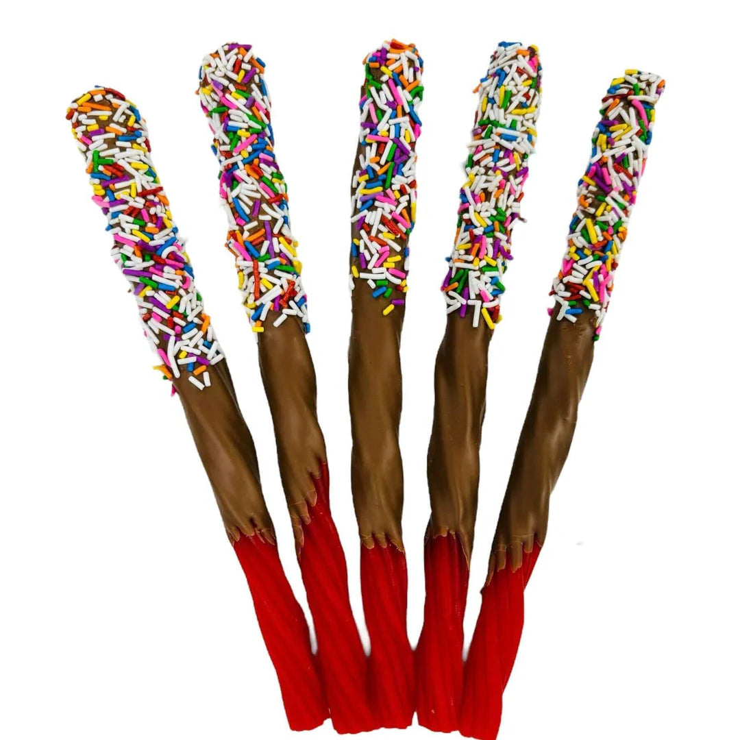 Découvrez une gourmandise unique avec notre paquet de 2 réglisses enrobées de chocolat au lait, généreusement roulées dans des vermicelles de bonbons croquants. Parfait pour les amateurs de sucreries, ce mélange irrésistible de réglisse moelleuse, de chocolat fondant et de bonbons colorés crée une explosion de saveurs et de textures à chaque bouchée.